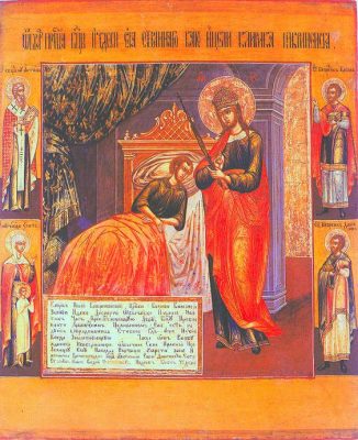 Любовию, Чистая Дево, Твою святую икону почитающим и Божию Тя истинную Матерь прославляющим и верно поклоняющимтися Целительница явися, всякое зло и болезни от сих удаляющая, яко Всемогущая.