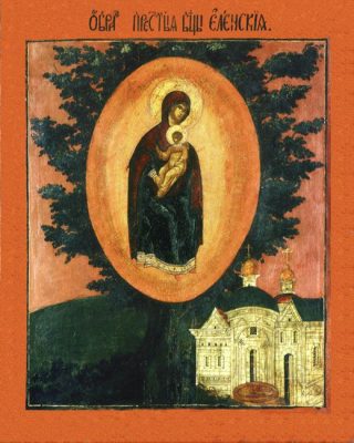 Елецкая-Черниговская икона Божией Матери явилась на ели близ Чернигова в 1060 году, при Черниговском князе Святославе Ярославиче, как было записано в синодике епископа Черниговского Зосимы Прокоповича (1655 — 1657). Икона была поставлена в церковь, основанную в честь Елецкой иконы Божией Матери. Преподобный Антоний (+ 1073; память 10 июля), подвизавшийся на Болдиной горе в 1068 — 1069 годах, благословил основать здесь монастырь. В 1238 году монастырь был разрушен татарами, но икона сохранилась во внутренности монастырской стены. В 1470 году Киевский князь Симеон Олелькович восстановил обитель, и икону вновь поставили в храме. Дальнейшая судьба иконы неясна. По одному преданию, потомок Черниговских князей Барятинский увез икону в Москву в 1579 году, когда Чернигов перешел к польскому королю Стефану Баторию. В 1687 году окольничий князь Даниил Барятинский возвращался из похода в Крым. В Харькове он сильно заболел и перед смертью передал бывшую при нем в походе Елецкую икону в Харьковский Успенский собор. По другому преданию, икона исчезла из обители при ее разорении в XVII в. польскими войсками Сигизмунда III. В 1676 году князь Константин Острожский пожертвовал в Елецкую обитель список Елецкой иконы Божией Матери, привезенный из Владимира братьями Козелами. Архимандрит Иоанникий (Голятовский) возобновил тогда монастырь и описал многочисленные чудеса от этой иконы в книге «Скробница» («Сокровищница»), изданной в 1676 году в Новгороде Северском. Известна и еще одна Елецкая икона Божией Матери, также явившаяся в 1060 году. Свое название она получила от того, что находилась в городе Ельце, в соборной церкви в честь Смоленской иконы Божией Матери. Празднество этой иконе положено 11 января.