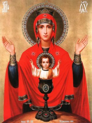Ветии человечестии недоумеют восхвалити по достоянию славное, Владычице, иконы Твоея явление. Ниже мы, грешнии, от скверных устен наших возможем принести достойное похваление Заступнице нашей. Обаче неисчетныя чудеса иконою Твоею являемая видевше, душею и сердцем радуйся, Тебе глаголем: Радуйся, от священнаго лика Твоего чудеса источающая; радуйся, от бед и скорбей скоро избавляющая. Радуйся, отвергающих Тя посрамляющая; радуйся, от всякаго зла прибегающих к Тебе сохраняющая. Радуйся, кротким сиянием Твоим мрак греха и мглу страстей наших разгоняющая; радуйся, души наша любовию к Тебе и Сыну Твоему исполняющая. Радуйся, на стезю покаяния нас премудре наставляющая; радуйся, добраго ответа пред Судиею Праведным нам усердная Ходатаица. Радуйся, Владычице, Неупиваемая Чаша, духовную жажду нашу утоляющая.