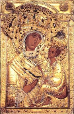 Тихвинская икона Божией Матери, по преданию, одна из икон, написанных святым апостолом и Евангелистом Лукой. В V в. из Иерусалима была перенесена в Константинополь, где для нее был построен Влахернский храм. В 1383 году, за 70 лет до взятия турками Константинополя, икона исчезла из храма и в лучезарном свете явилась над водами Ладожского озера. Чудесно носимая с места на место, она остановилась близ города Тихвина. На месте явления иконы был построен деревянный храм в честь Успения Богородицы. Усердием великого князя Василия Ивановича (1505 — 1533) вместо деревянного храма был возведен каменный. В 1560 году по приказу царя Иоанна Грозного при храме был устроен мужской монастырь, обнесенный каменной стеной. В 1613 — 1614 годах шведские войска, захватив Новгород, не раз пытались уничтожить монастырь, но заступлением Божией Матери обитель была спасена. Так, однажды, в виду приближавшегося шведского войска, иноки решили бежать из монастыря, взяв чудотворную икону, но не могли сдвинуть ее с места. Это чудо остановило малодушных, и они остались в монастыре, уповая на защиту Божией Матери. Незначительные по числу защитники монастыря успешно отражали атаки намного превосходивших их сил противника. Наступающим шведам то представлялась многочисленная рать русских, идущая от Москвы, то какое-то небесное воинство, и они обращались в бегство. После чудесной победы над шведами в монастырь прибыли царские послы. Сняв список с чудотворной иконы, они отправились в деревню Столбово, в 50 верстах от Тихвина, где 10 февраля 1617 года был заключен мир со шведами. Главною порукою мира с русской стороны был принесенный список с чудотворной иконы. Впоследствии этот список был принесен в Москву и поставлен в Успенском соборе, а затем по просьбе новгородцев, участников войны со шведами, отправлен в Новгород и поставлен в Софийском соборе. Всероссийское празднование Тихвинской иконе Божией Матери, прославленной неисчислимыми чудотворениями, установлено Церковью в память ее чудесного явления и одоления врагов предстательством Богородицы.