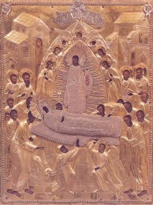Первый храм Псково-Печерской обители был освящён в честь иконы Божией Матери «УСПЕНИЕ ПРЕСВЯТОЙ БОГОРОДИЦЫ». Летопись зафиксировала первое исцеление от иконы в 1473 году. Особенно прославился образ в 1581 году во время осады Пскова польским королём Стефаном Баторием. В честь этого события написана ПСКОВО-ПОКРОВСКАЯ икона Божией Матери.
