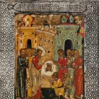 О, Преблагий Господи Иисусе Христе, Боже наш, Ты древле человеческаго естества Твоего лице, пресвятою водою смыв и убрусом отер, чудесно убо на том же убрусе изобразити Себе и Едесскому князю Авгарю во исцеление его от недуга послати благоволил еси. Се и мы ныне грешнии рабы Твои, душевными и телесными недуги нашими одержимы, лица Твоею, Господи, ищем, и с Давидом во смирении душ наших зовем не отврати лица Твоею, Господи, от нас, и не отклонися гневом от рабов Твоих, помощник нам буди, не отрини нас и не остави нас. О, Всемилостивый Господи, Спасителю наш, изобрази Сам Себе в душах наших, да во святыни и правде жительствующе, будем сынове Твои и наследницы Царствия Твоего, и тако Ссбе, Премилостиваго Бога нашего, купно со Безначальным Отцем Твоим и Пресвятым Духом славити не престанем во веки веков. Аминь