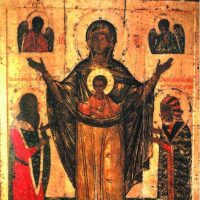 Богородица в судьбе России, как мать для младенца. В почитании Божией Матери русскими людьми — особая тайна. Кроется она в надежде на всесильное материнское заступничество перед Богом. Ведь Всевышний — не только великий благодетель, но и грозный судия. У русских, имеющих в характере такую ценнейшую черту, как покаяние, всегда с Боголюбовью соседствовала Богобоязнь. Как у матери родной, просит богобоязненный грешный человек покрова Богородицы, идя на суд Господний. Человек знает свои грехи, на то дана ему Богом совесть. Держать ответ перед Богом за грехи и помогает великая Заступница, Защитница, Спасительница — Матерь Божия. Она как бы смягчает кару, но зато обнажает в человеке совесть. Когда поэт говорит, что «умом Россию не понять», он имеет в виду именно Совесть. Эту ранимую и совершенно не материальную «структуру» — божественную сущность русские доверили Богородице.