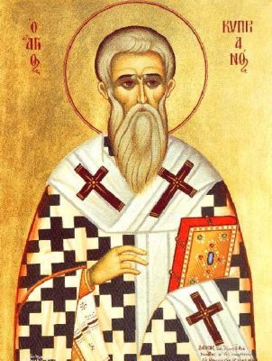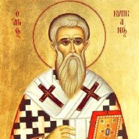 Священномученик Киприан, епископ Карфагенский, родился около 200 года в городе Карфагене (Северная Африка), где протекла вся его жизнь и деятельность. Фасций Киприан был сыном богатого сенатора-язычника, получил прекрасное светское образование и стал блестящим оратором, учителем красноречия и философии в Карфагенской школе. Он часто выступал в судах как ходатай и защитник по делам своих сограждан. Киприан впоследствии вспоминал, что долго «оставался в глубокой мгле ночной.., далекий от света Истины». Состояние, доставшееся от родителей и нажитое своей деятельностью, знаменитый ритор тратил на роскошные пиры, но они не могли заглушить в нем жажды истины. Заинтересовавшись христианством, он познакомился с сочинениями апологета пресвитера Тертуллиана (родился ок. 160 г.). Впоследствии святитель писал, что ему казалось невозможным тогда при его навыках достичь обещанного Спасителем возрождения.