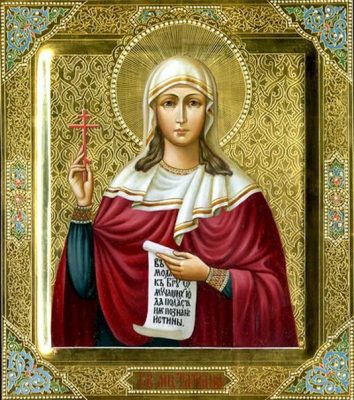 Святая же, встав, обличила во лжи самого судью и его служителей, говоря, что боги их — бездушные идолы, она же служит единому истинному Богу, творящему чудеса.