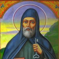 Преподобный Никола Святоша (Святослав), князь Черниговский, Печерский чудотворец, в Ближних пещерах (+ 1143), был правнуком великого князя Ярослава Мудрого и сыном князя Давида Святославича Черниговского (+ 1123), в некоторых источниках отец преподобного именуется святым. Святоша был Луцким князем, имел жену и детей (дочь его была впоследствии замужем за Новгородским князем святым благоверным Всеволодом-Гавриилом (+ 1138). 17 февраля 1106 года святой князь, оставив семейство, принял постриг в Киево-Печерской обители. Здесь Никола-Святоша с великим смирением проходил послушания: три года работал в поварне, для которой рубил дрова и носил воду, следующие три года был привратником в монастыре. Около своей келлии святой развел сад. На свои средства он построил в монастыре храм Святой Троицы и больничную церковь во имя святителя Николая, своего небесного покровителя.