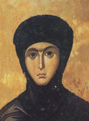 Преподобномученица Феодосия жила в VIII веке. Она родилась по усердной молитве родителей и после их смерти воспитывалась в константинопольском женском монастыре в честь святой мученицы Анастасии. Святая Феодосия приняла постриг в женской обители после того, как раздала бедным оставшееся от родителей имущество. Часть денег употребила на написание икон Спасителя, Божией Матери и мученицы Анастасии.