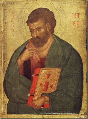 Святой апостол и Евангелист Марк, называемый также Иоанн-Марк (Деян.12:12), апостол от 70-ти, племянник апостола Варнавы (память 11 июня), родился в Иерусалиме. Дом его матери Марии примыкал к Гефсиманскому саду. Как говорит церковное предание, в ночь Крестных страданий Христа он следовал за Ним, завернувшись в плащ, и убежал от схвативших его воинов (Мк.14:51-52). После Вознесения Господня дом матери святого Марка стал местом молитвенных собраний христиан и пристанищем для некоторых из апостолов (Деян.12:12).